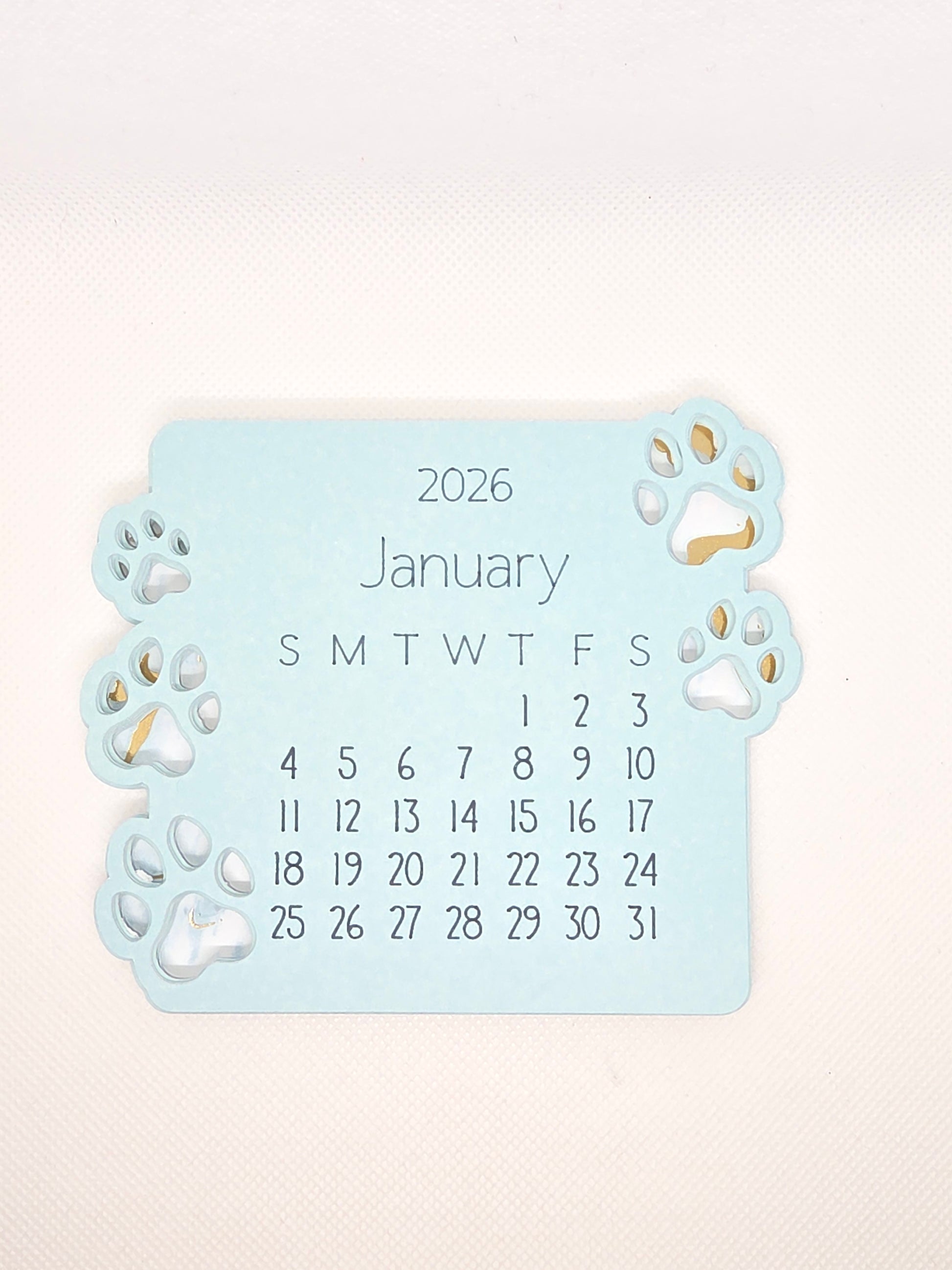 2026 Mini Desk Calendar β Cute Layered Paper Design (Paw Print)